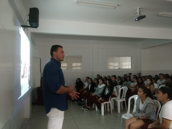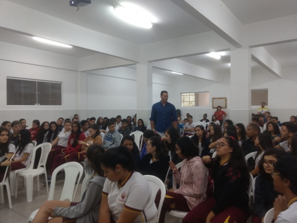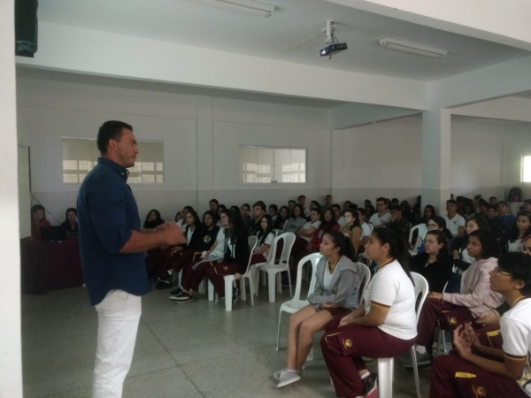 O Colégio Fênix teve a honra de receber mais uma vez o Capitão Styvensom para realizar uma palestra com os alunos dos 9º A/B, 1º e 2º séries. Na oportunidade foram abordadas temáticas como o trabalho ante-bullying, uso de bebidas e drogas na adolescência.