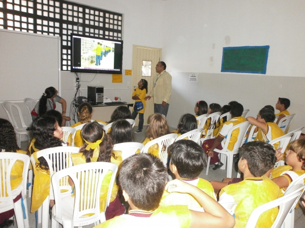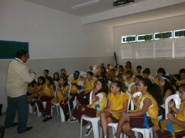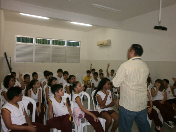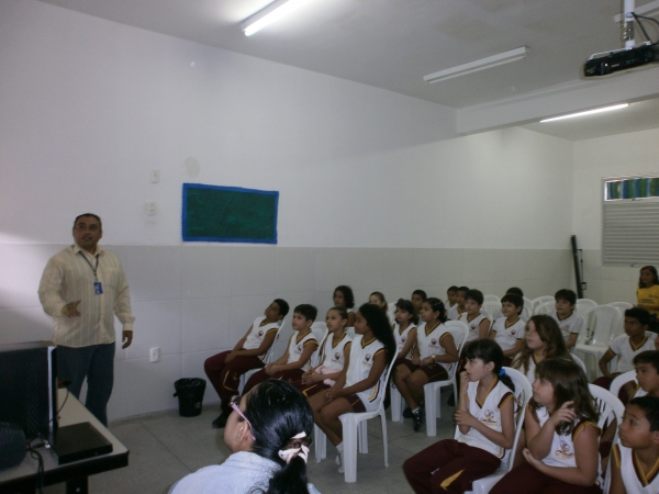 No dia 04/06 os alunos dos 4ºs Anos receberam na Sala de Multimídia o Sr. Mardril Santiago; Analista dos Correios , que atendendo ao convite da Equipe Pedagógica compareceu a escola, para implementar o Projeto Correspondência que está sendo mediado pelas Profªs. Fabiane e Marcia. O projeto teve inicio no mês de maio com a inauguração de uma Agência lúdica dos Correios que foi construída no Espaço Cultural da escola para estimular as produções das cartas dos alunos do Ensino Fundamental I. Na oportunidade o Sr. Mardril entusiasmou todos os alunos falando da Comunicação e da Cidadania Postal. Os alunos participaram ativamente.