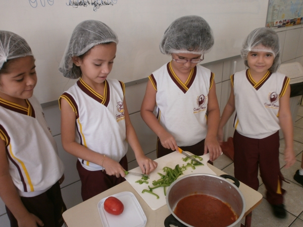Neste trimestre a professora Marione, iniciou as atividades com o tema “EDUCAÇÃO ALIMENTAR CONSTRUINDO UMA VIDA SAUDÁVEL”. O objetivo é estimular a escolha de alimentos saudáveis e começar a se alimentar de forma saudável na escola. Entre as atividades realizadas ressaltamos a RECEITA DO CUSCUZ RECHEADO. Os alunos participaram ativamente e saborearam o cuscuz com muito entusiasmo.